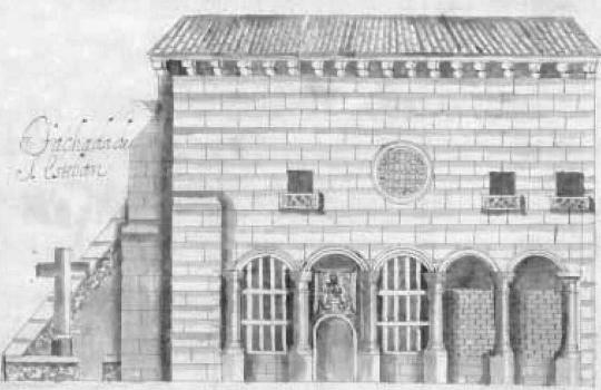 En el dibujo realizado por Ventura Seco, parece haber dos edificios, uno el de la iglesia y otro anexo, que seguramente era el antiguo hospital fundado por Pedro Miago dedicado a curar enfermos de cáncer y lepra.