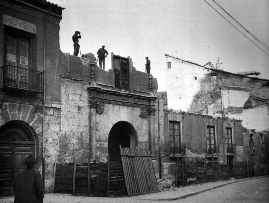 Derribo de la Casa del Escribano Pedro Gómez de Arrieta, construida hacia 1540 y derribada en los años 60.