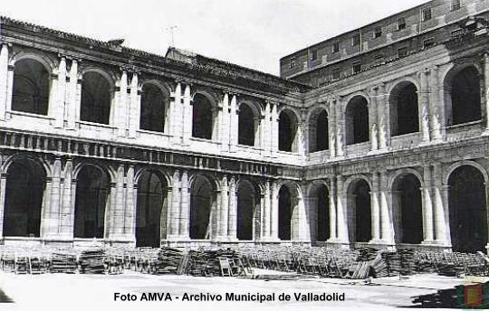 "Durante mucho tiempo el Patio Herreriano fue atribuido erróneamente al arquitecto Juan de Herrera por su estilo y proporciones, inspirados en el Patio de los Evangelistas de El Escorial".