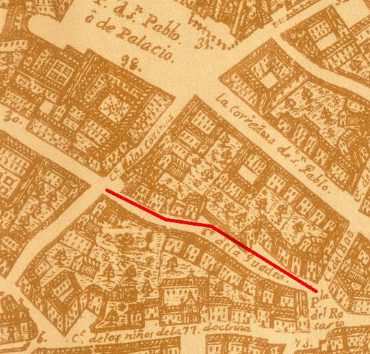 Como curiosidad, en el plano la Calle Felipe II no existe, la calle que cruza hacia la Plaza de San Pablo es la actual Calle León, en ese momento "Calle de las Cocinas del Rey".