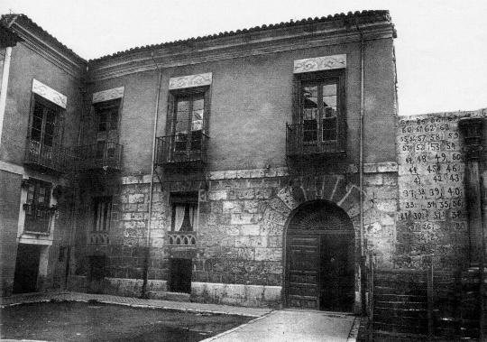 Casa del Doctor Antonio Carabeo, construida en 1580 y derribada hacia 1965. La que se ve al lado es la de Gómez Arrieta con las piedras numeradas.