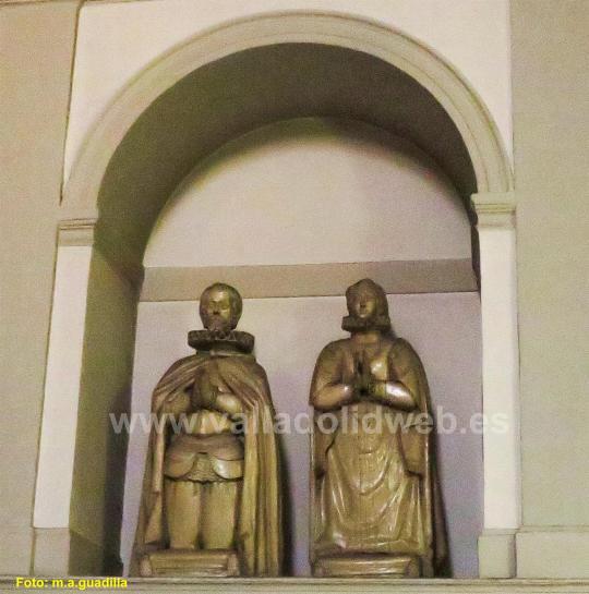 En los laterales de la capilla se encuentran las estatuas orantes de los Maldonado y de sus hijas, realizadas en alabastro por Pedro de la Cuadra.